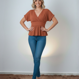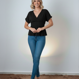 La Blusa Manga Corta Neira, una elegante opción para tu armario. Su diseño casual combina confort y estilo, con un delicado volero que añade un toque femenino.