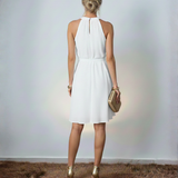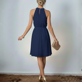Envuelve la cinta métrica alrededor de la línea natural de tu cintura. Para hallar esta línea, inclina tu brazo de forma lateral hasta tocar tu rodilla. El pliegue que se forma es el punto donde debes tomar la medida.